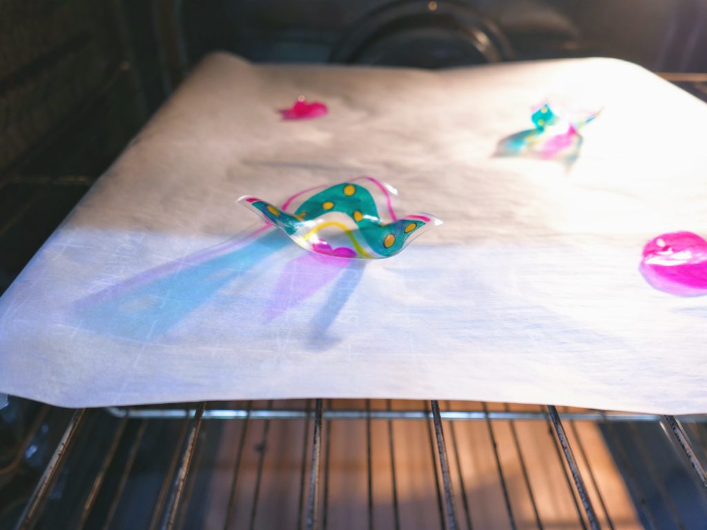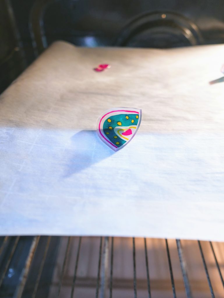 Place the rainbows and circles on a parchment paper lined baking sheet. Make sure to leave plenty of space between each object, as they move quite a bit when baking, and you don’t want them to stick together.